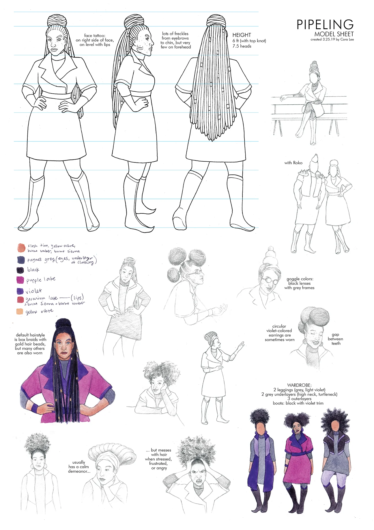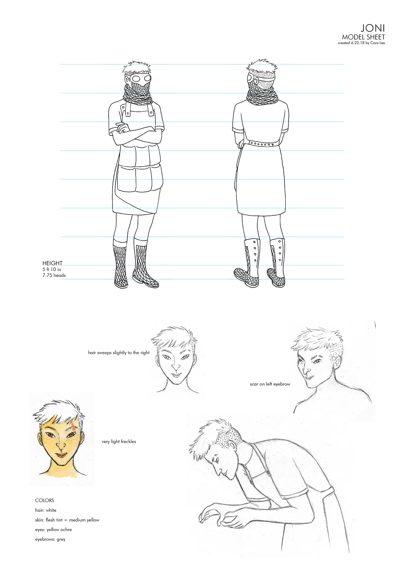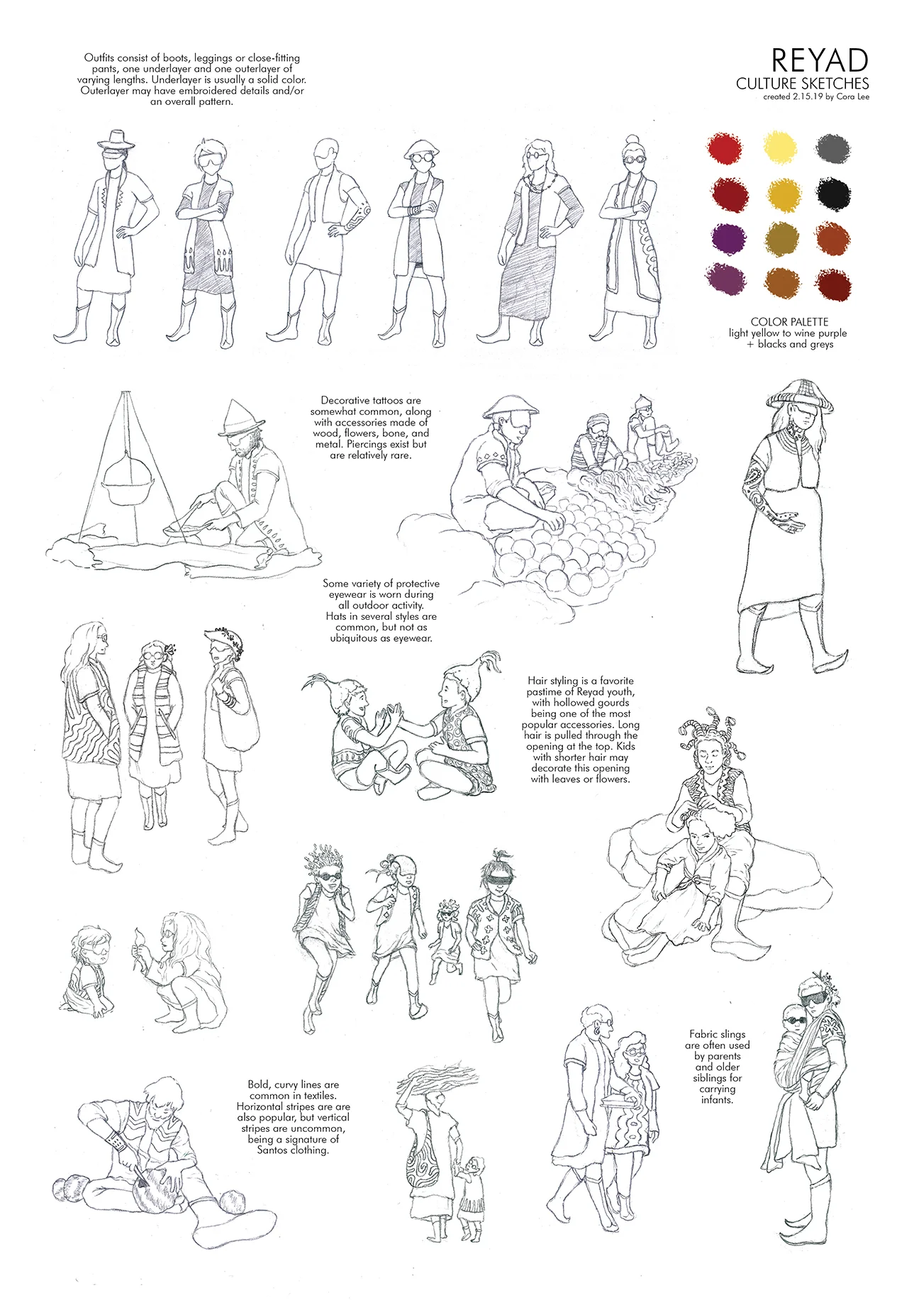 These are character designs for a webcomic that takes place within the fictional Dweller Universe, a sci-fi worldbuilding project currently being created by Trouble Book Club. The comic writer wanted a strong character artist to develop visual representations of the characters in his comic plot/script. I interviewed the writer regarding demographics, history, and personality of each character in order to create the visual designs for the comic. In addition to the individual characters, Iām also designing a cohesive aesthetic for each of the 3 cultural regions on the Dweller planet (Reyad, Santos, and Nantes). This project is ongoing and will eventually include many more characters than the ones seen here.